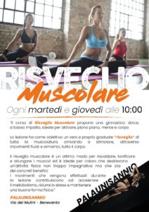 Ogni martedì e giovedì, dalle ore 10, è disponibile il corso di Risveglio Muscolare, che propone una ginnastica dolce, a basso impatto.